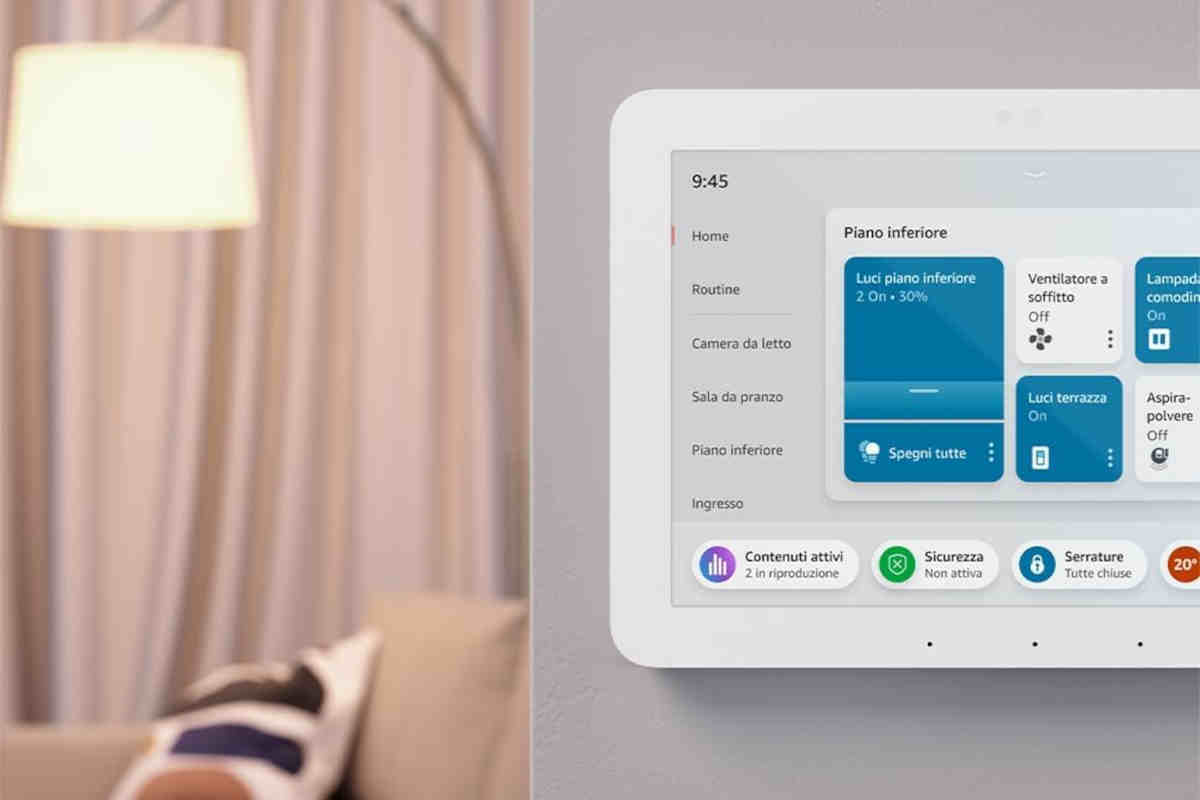 Il nuovo pannello di controllo Echo Hub di Amazon funziona sia con un sistema touch direttamente via display oppure tramite comandi vocali via Alexa connettendolo alla alla rete Internet tramite Wi-Fi o Ethernet. Si possono controllare oltre diecimila dispositivi compatibili (anche tramite Bluetooth, Zigbee, Matter e Thread) per gestire tutta la casa in modo facile e veloce. E tramite l’app Alexa si possono controllare le funzionalità anche da remoto.