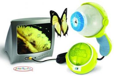 Eyeclops è uno di quei gadget per bambini che però nascondono un interno tecnologico e davvero interessante: è una sorta di bulbo oculare montato su una pistoletta che permette di indirizzarlo verso un obbiettivo mirato e poi di rivedere tutto, in alta definizione sulla tv!