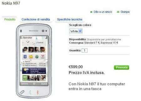 Nokia N97 ossia il Re delle Nseries è pronto al debutto quest’estate. Si può già pre-ordinare per un prezzo di 599 euro iva inclusa sia sul Nokia Shop sia su quello di Tim, ma arrivano indiscrezioni sulla possibile commercializzazione anche con Tre H3G.