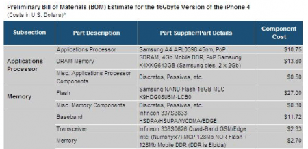 Quanto costa Apple iPhone 4? Beh c’è il prezzo di vendita sotto contratto negli USA, ad esempio, che viene 199-299 dollari ma se dovessimo concentrarci solo sul costo di ogni singolo componente poi sommato insieme per un totale “pulito“? La risposta arriva ancora una volta da iSuppli