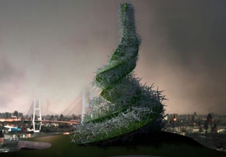 Ci sono tipi d’alga estremamente efficaci nella depurazione dell’aria: succhiano letteralmente l’inquinamento assorbendolo e lasciano traspirare ossigeno. Secondo gli architetti questo edificio potrebbe essere alto anche