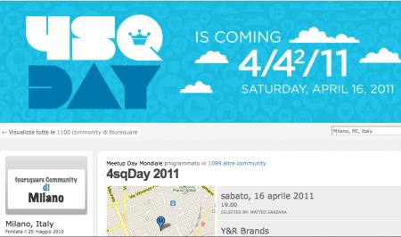Appassionati di Foursquare segnatevi la data del 16 aprile prossimo quando a Milano e a Bologna sarà possibile partecipare al Foursquare Day ossia la giornata mondiale che celebra il social network dei check-in. La scelta del sedici aprile non è certo a caso visto che è il quarto giorno del quarto mese dell’anno, insomma quattro al quadrato, il “4-squared day“! Sarà un’occasione per incontrarsi e fare conoscenza di un fenomeno letteralmente esploso con oltre 8 milioni di iscritti. Ma vediamo tutti i luoghi e le coordinate degli eventi e qualche curiosità su Foursquare.