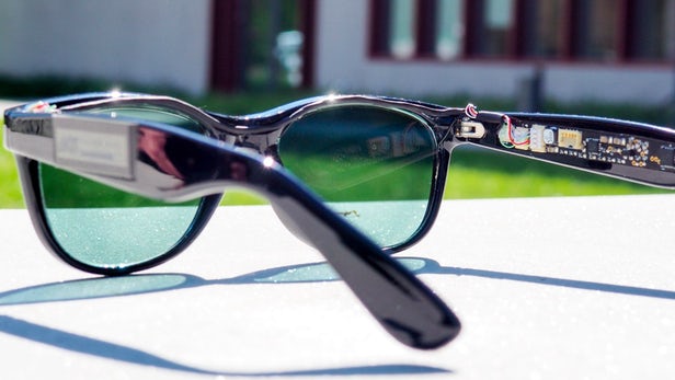 Nelle stanghette sono nascosti tutti i componenti come il microprocessore che governa il tutto, i due sensori e l’hardware per i due display stessi che possono mostrare in sovraimpressione informazioni in realtà aumentata e virtuale.
