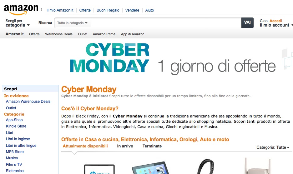Tutte le migliori offerte e le promozioni del lunedì cibernetico dei più famosi negozi online raggruppati tra i principali store che aderiscono alla giornata di sconti.